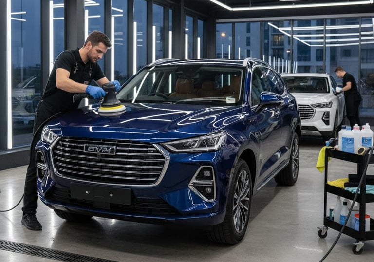 Professional machine polishing to remove swirl marks, oxidation, scratches, and dull paintwork. Restores clarity, gloss, and depth — achieving a showroom-quality shine.